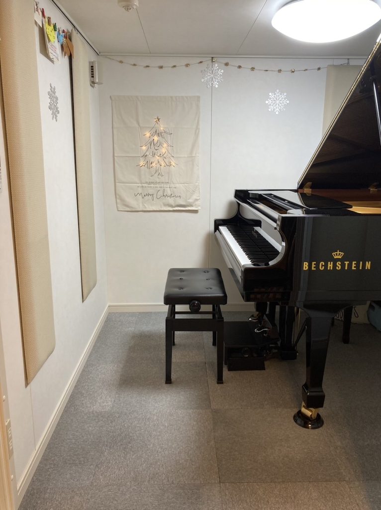 偉大な音楽家に愛されたドイツの名器「BECHSTEIN」(ベヒシュタイン)の高級グランドピアノを使用しながら、エアコン・防音完備の快適な部屋でレッスンを受けられます。